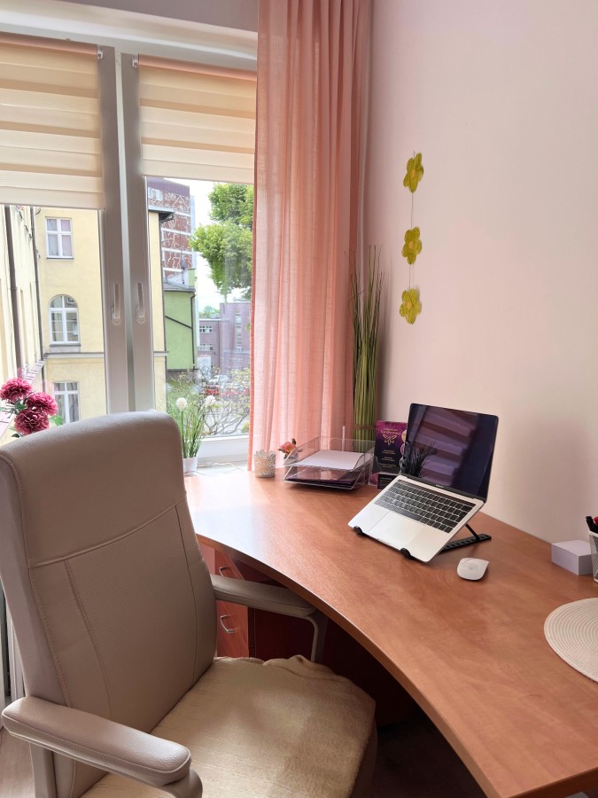 To tutaj wszystko się zaczyna – w cichej, ciepłej przestrzeni, gdzie kobieta może odetchnąć, wyciszyć umysł i wrócić do siebie. Gabinet to moje miejsce pracy i serce transformacji – świadek głębokich procesów, rozmów, łez ulgi i decyzji, które naprawdę zmieniają życie wielu kobiet. Odbywają się tu indywidualne sesje hipnoterapii, coaching, a także kameralne spotkania i warsztaty rozwojowe – wszystko po to, by każda kobieta mogła poczuć się bezpiecznie i naprawdę sobą.